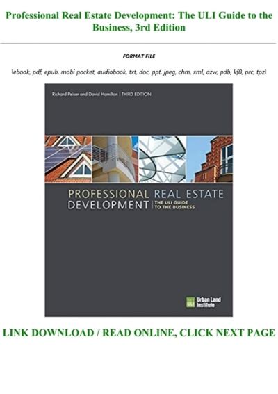 Read Online Professional Real Estate Development The ULI Guide to the Business 3rd Edition Doc online is a convenient and frugal way to read Professional Real Estate Development The ULI Guide to the Business 3rd Edition you love right from the comfort of your own home. Yes, there sites where you can get Doc "for free" but the ones listed below are clean from viruses and completely legal to use.